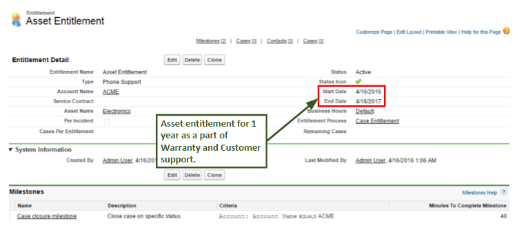 – title=”{!Account.Name}” Determines the page title. A Formula expression is used to insert the current object’s name for the page title.